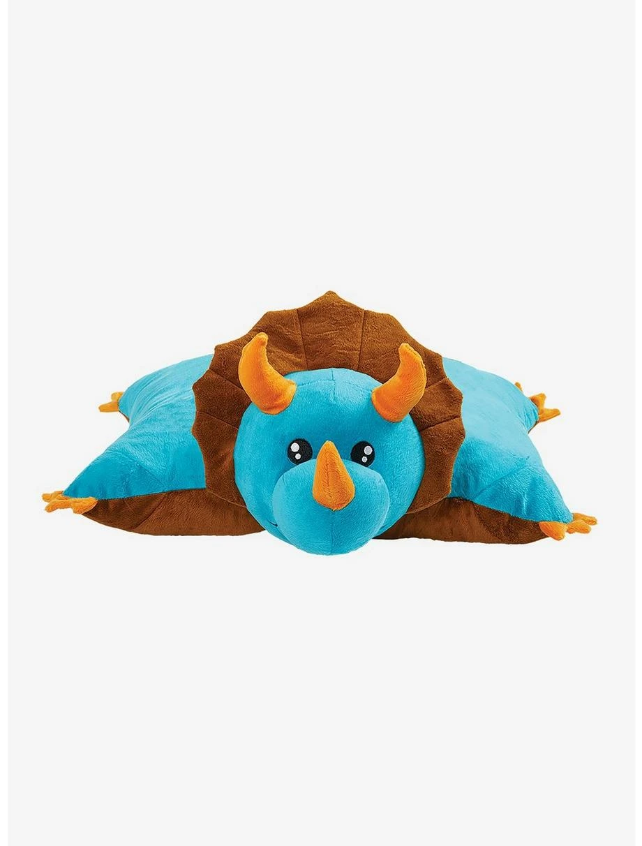 Pillow Pets brings you the plushiest and friendliest stuffed dinosaur you can find! Blue Dinosaur Pillow Pet features bright and vibrant blue chenille with brown and orange accents. Kids of all ages will enjoy the fun of everyday use as a toy for imaginative play and a large stuffed toy for reading, watching television, or studying with friends. Ideal for rest time and fun time not to mention a comforting partner on road trips or airplane rides. Starts out as a pal, then unfastens and quickly becomes a comfy pillow!