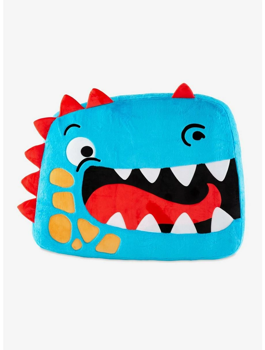 The funniest and comfiest way to lounge is with this giant plush and cozy dinosaur floor pillow complete with a non-skid bottom, removeable cover and air pump included