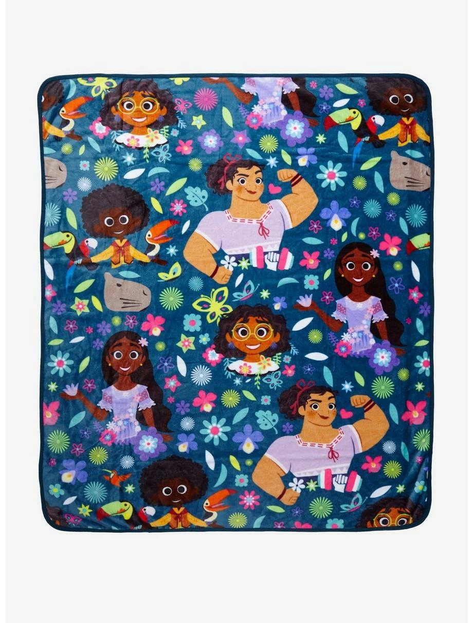 Feel the magic of the Madrigals with this Disney throw! Features Encanto characters like Mirabel, Luisa, Isabela, and more against a floral background.