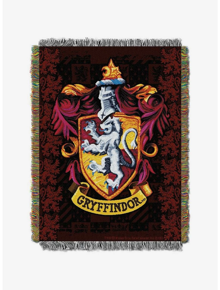 Stay warm in your common room. This tapestry throw blanket from Harry Potter features the Gryffindor crest.