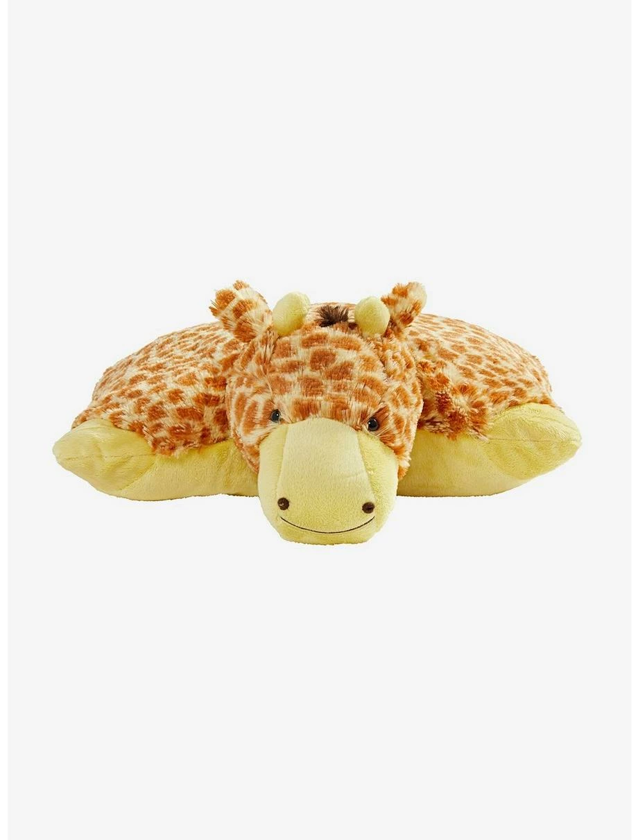 Get tons of warm snuggly happiness and cuddle up every day and night with the Pillow Pets Jolly Giraffe! The plushest, friendliest, and softest stuffed animal you will find. Ideal rest time and fun time not to mention a comforting partner on road trips or airplane rides. Starts out as a friend, then un-fasten its belly and quickly lays flat!