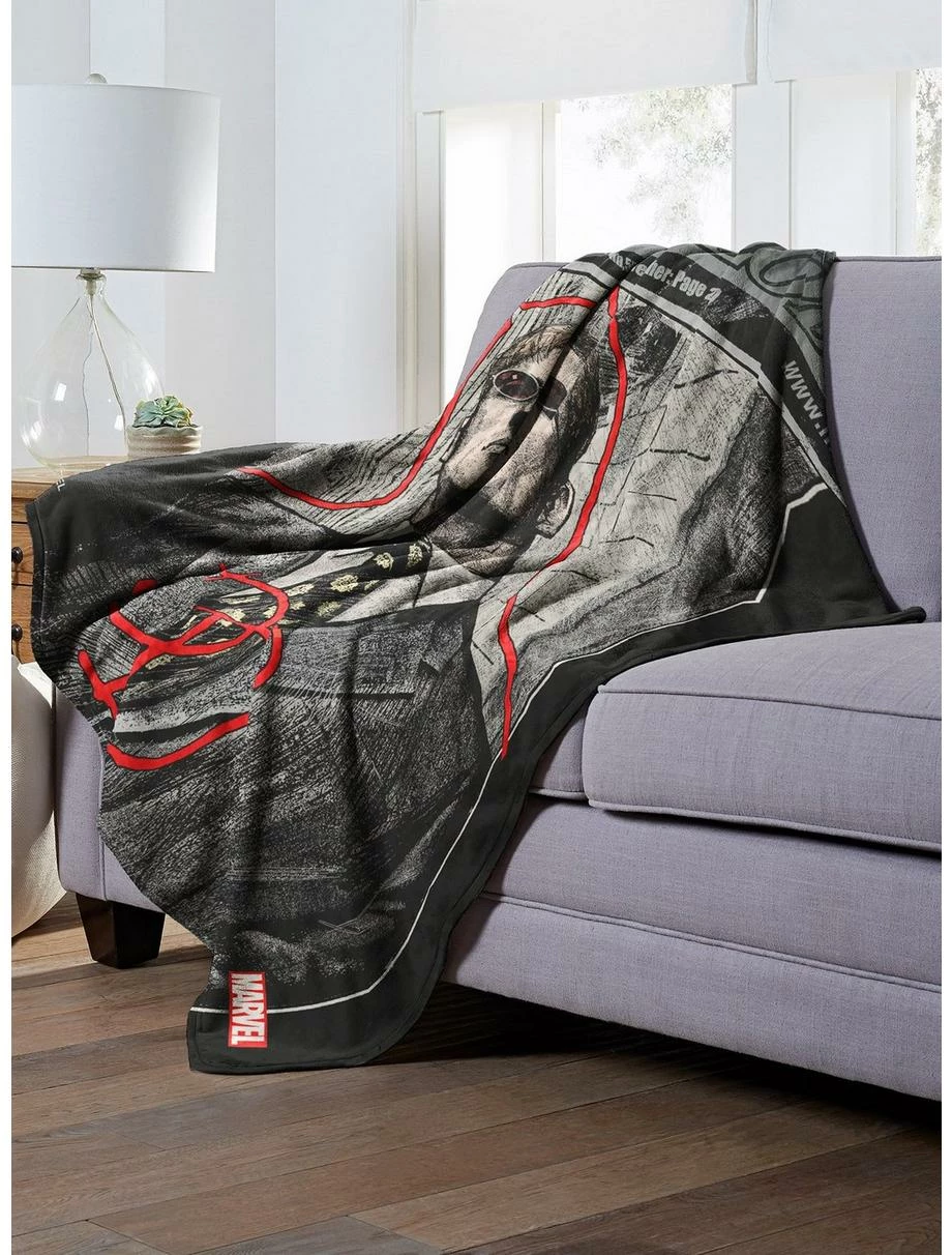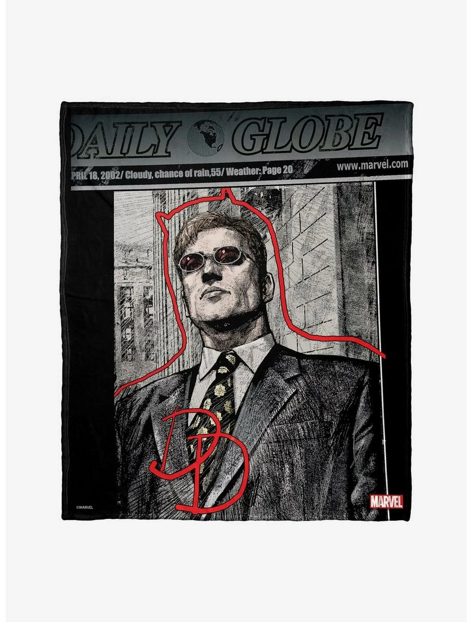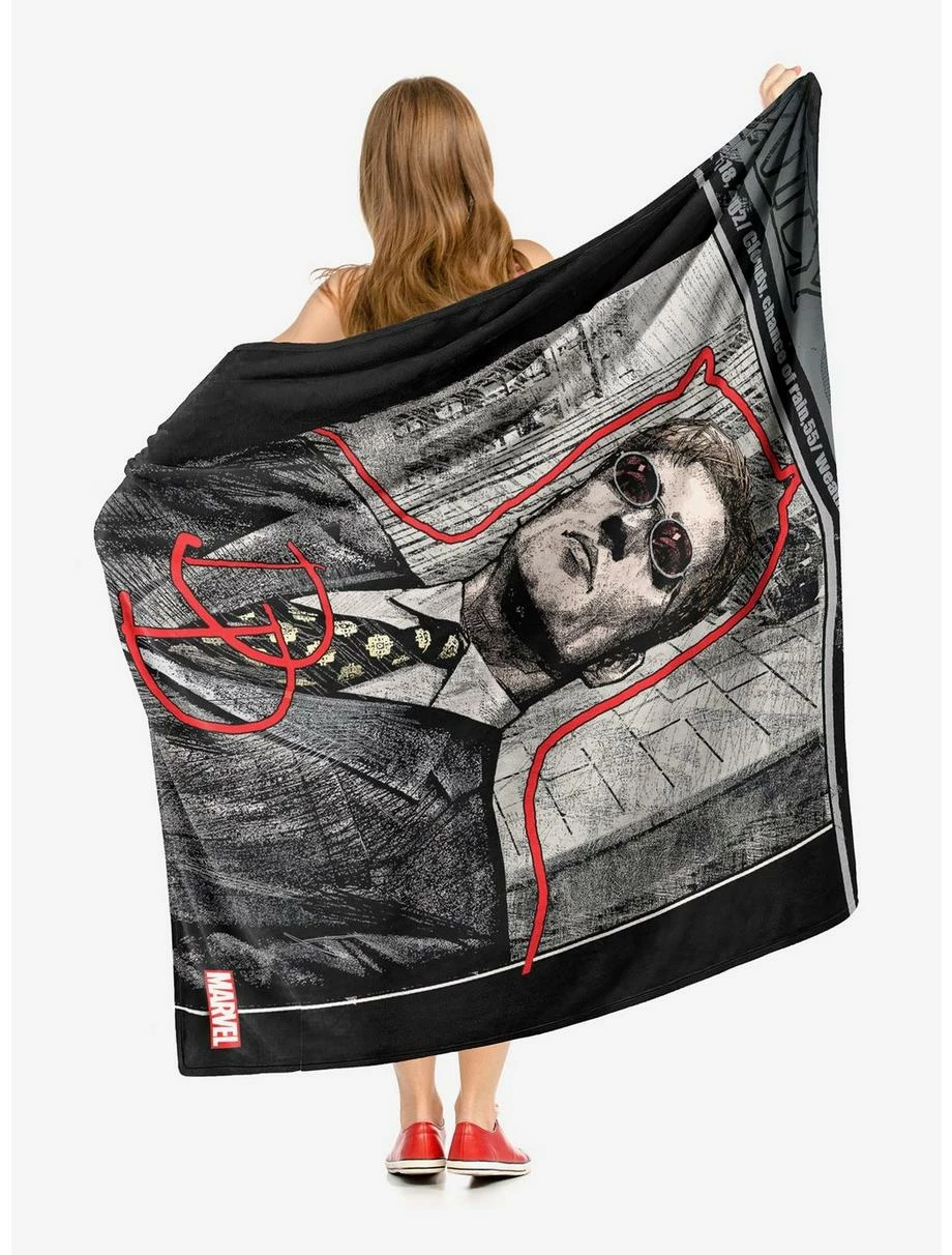 Silky soft and cozy, this Marvel Comics “Daily Daredevil” Silk Touch Throw Blanket by The Northwest is ideal for snuggling. Grab our high-quality printed throw, it’s the perfect home accessory. Features the investigative journalist for the New York newspaper The Daily Bugle, Ben Urich. Silky-soft, warm and cozy throw; make great gifts for friends and loved ones. Measures 50″W x 60″L. Made of 100% Polyester. Machine wash cold separately using delicate cycle and mild detergent. Do not bleach. Machine dry separately on gentle cycle. Remove promptly. Do not iron.