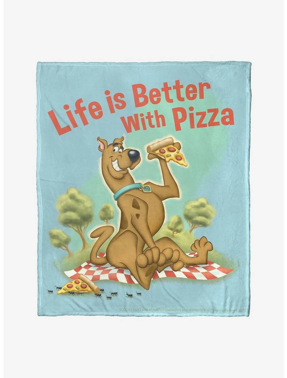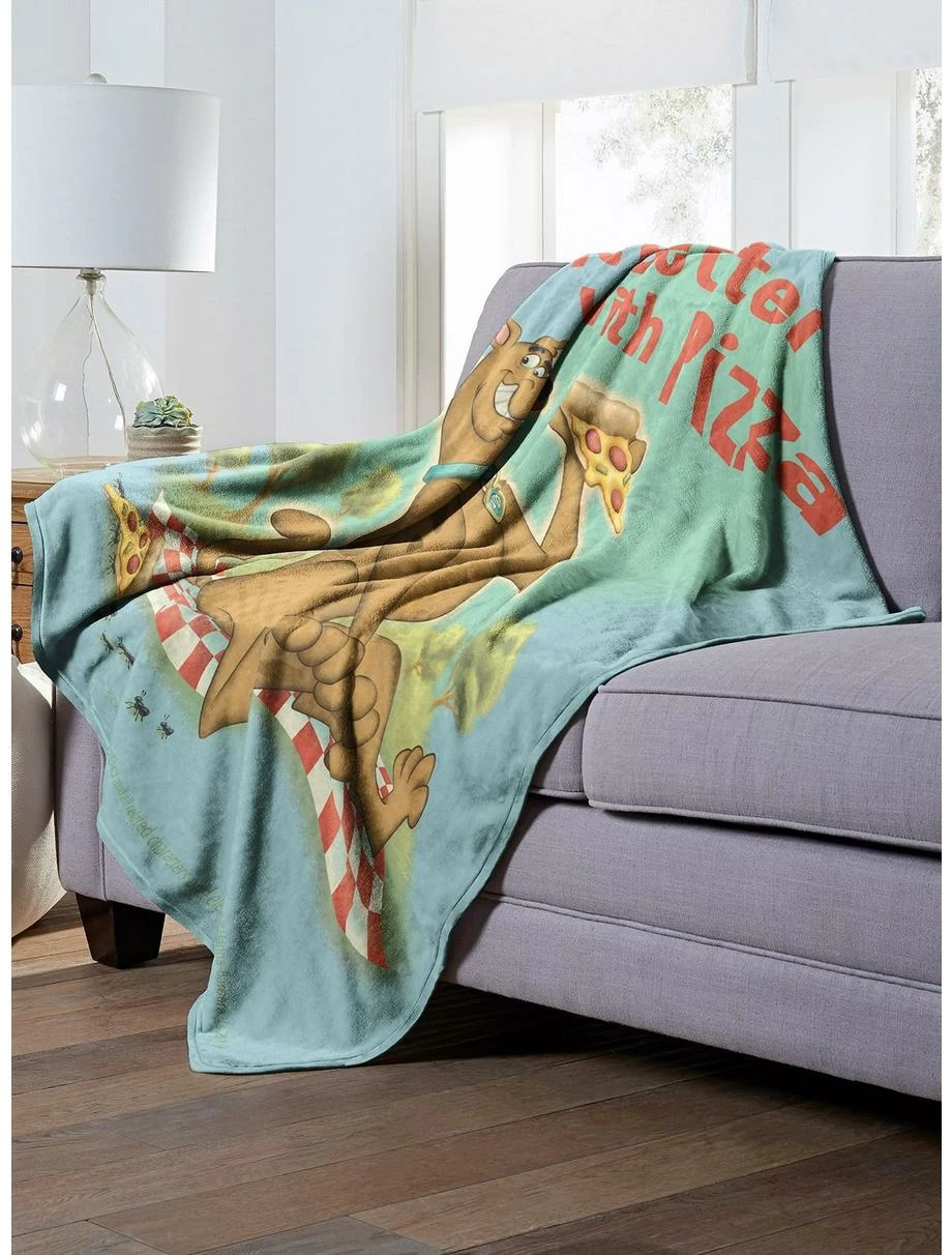 Silky soft and cozy, this Warner Bros.’ Scooby Doo “Pizza is Life” Silk Touch Throw Blanket by The Northwest is ideal for snuggling. Grab our high-quality printed throw, it’s the perfect home accessory. Features Scooby Doo holding pizza. Silky-soft, warm and cozy throw; make great gifts for friends and loved ones. Measures 50″W x 60″L. Made of 100% Polyester. Machine wash cold separately using delicate cycle and mild detergent. Do not bleach. Machine dry separately on gentle cycle. Remove promptly. Do not iron.