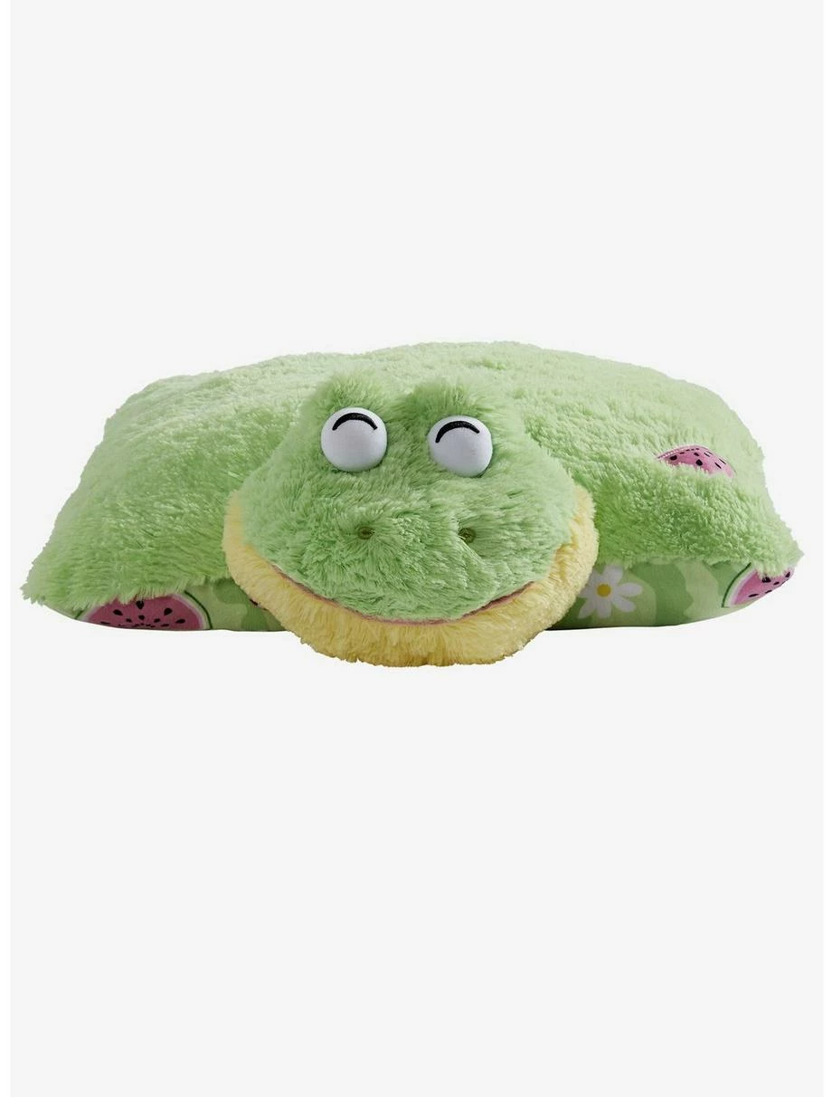 We’re losing our rind over this one! Watermelon Frog is here just in time for spring. With a subtle scent of watermelon, this little frog is the sweetest thing and ready to take on life’s adventures with you! Fluffy and fabulously soft, this adorable Pillow Pet is perfect for playtime, and a comforting cuddle buddy at bedtime. Surprise them with a Sweet Scented Watermelon Frog Pillow Pet that they will love endlessly as a child, snuggle with as a teen, and end up taking to college. Pillow Pets bring joy, security, comfort and smiles to all ages. Super soft, parent approved, fun and functional, high quality plush designs that last through childhood and beyond. ONE IN A MELON! Sweet Scented Pillow Pets deliver the scent of delicious sweet treats in a plush you can hug. Watermelon Frog has a scent patch that smells like yummy watermelon so yummy we could jump for joy! COMFORTING COMPANIONS: Pillow Pets presents super soft, cute, & adorable stuffed animals that unfold into comfy pillows for sleep. Kids, teens, & adults love these classic & collectible comfy critters. COMFORT: This plush is a pal during the day, and then unfastens to become a pillow at night! It’s a comfortable travel friend for any child on road trips & airplanes, and can also can be used as boy & girl bedroom decoration. BEST BUDDY: Children of all ages will love this original toy for play & as a large pillow for reading, watching television, studying, and of course, nap time. DETAILS: Official Pillow Pets item. High-quality plush fabrics. Scents are created in the US from sustainably harvested trees or cotton, and are certified by the International Fragrance Association, and are compliant with US and EU Toy Regulations. BPA & Phthalates free. Unfastens into an 18in pillow. Sweet Scented Pillow Pets are surface washable. Let air dry.
